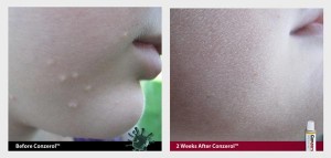 Absolutely! Conzerol™ is safe for children, and highly effective. As thousands of mothers and fathers have witnessed- Conzerol really works! While there is no treatment that has 100% cure rate- nothing comes closer. This molluscum contagiosum treatment is safe for use on both body and face of children (avoid eyes: simply flush eyes with cool water). Resolution is often 12 days away.